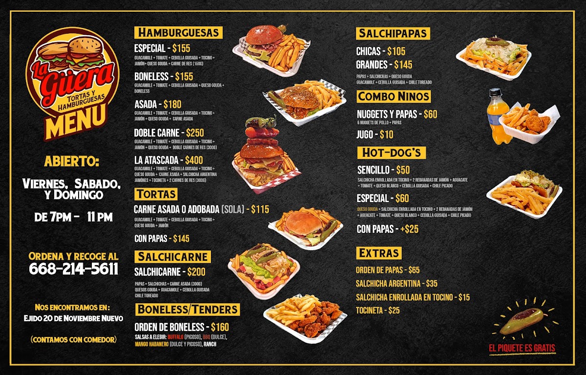 Welcome to the vibrant world of 'La Güera' Tortas y Hamburguesas, a culinary gem nestled in the heart of Los Mochis, Mexico. Located on the bustling Calle Revolucion, Poste 29 in Veinte de Noviembre Nuevo, this hamburger haven has quickly risen to become a favorite among locals and visitors alike.